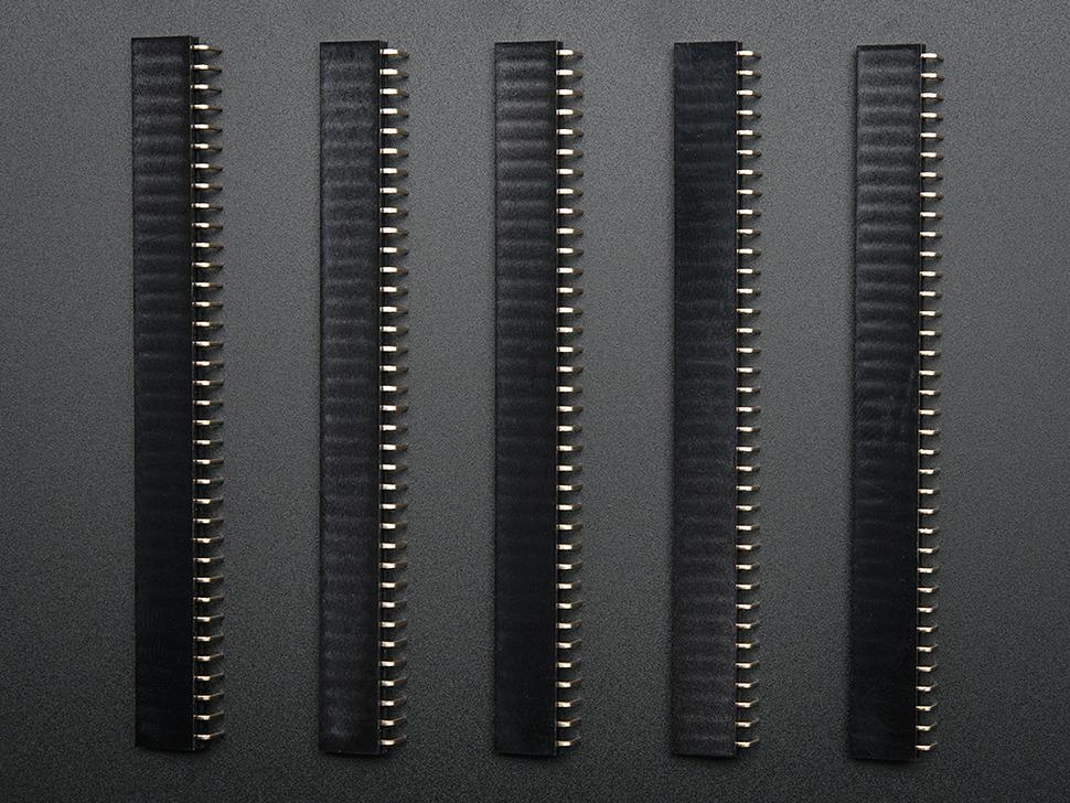 Elke verpakking bevat 5 haakse female 36-pins lange headers met een pitch van 0,1". Ze zijn ontworpen voor naadloze uitlijning en passen perfect op een raster van 0,1". Hoewel ze niet afbreekbaar zijn, kunnen ze handmatig worden aangepast met een zijkniptang of een dunne ijzerzaag door door het midden van een socket te zagen.