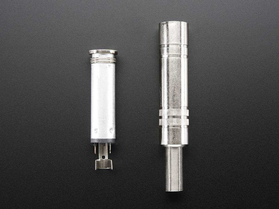 Dit artikel is een 1/4" stereo-aansluiting, groter dan de gangbare 3,5mm-pluggen/-aansluitingen die doorgaans in professionele audio-omgevingen worden gebruikt. Hij past naadloos bij onze 1/4" (6,35mm) DIY stereo-aansluiting, perfect voor het maken van kabels die met elkaar verbonden moeten worden.