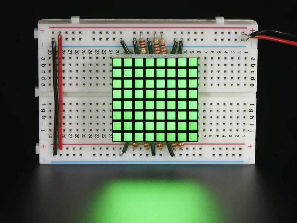 De zuiver green LED's glinsteren met een rijke tint, hoewel hun karakteristieke tint enigszins kan afwijken van die van andere green LED-matrices van vergelijkbare grootte. Kennis en hulpmiddelen zijn direct beschikbaar om je installatie te begeleiden via de Arduino speeltuintutorials.