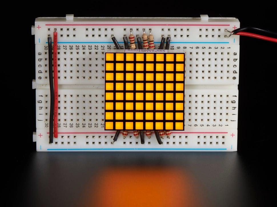 Creëer boeiende visuele displays met deze compacte 8x8 gele LED-matrix, perfect formaat van 3 cm per zijde. De compacte vormfactor is ideaal voor integratie breadboard , met 16 pinnen met een tussenruimte van 2,5 cm voor naadloze connectiviteit.