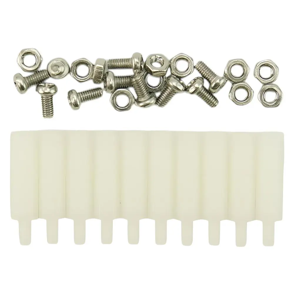 De verpakking van 10 stuks bevat 10 sets schroeven en moeren, zodat u over alle benodigde onderdelen beschikt om de bovenkanten van de afstandhouders stevig aan uw projecten te bevestigen. Hierdoor hoeft u minder extra te kopen. Elk onderdeel past naadloos, waardoor de installatie snel en eenvoudig is en de efficiëntie van de projectbouwprocessen toeneemt.