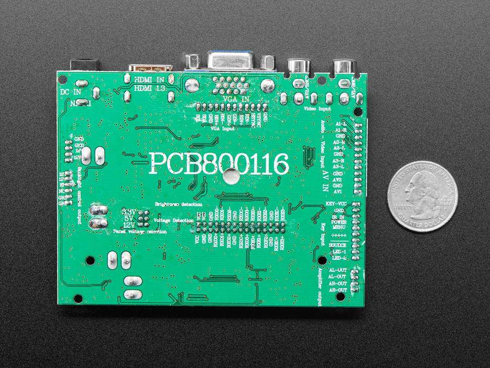 Sluit uw display moeiteloos aan met een 9-12VDC-voedingsadapter op de 2,1mm center-positieve DC-aansluiting. Profiteer van de veelzijdigheid met opties voor aansluiting via HDMI, VGA of NTSC/PAL, compatibel met apparaten zoals Raspberry Pi of een BeagleBone Black.