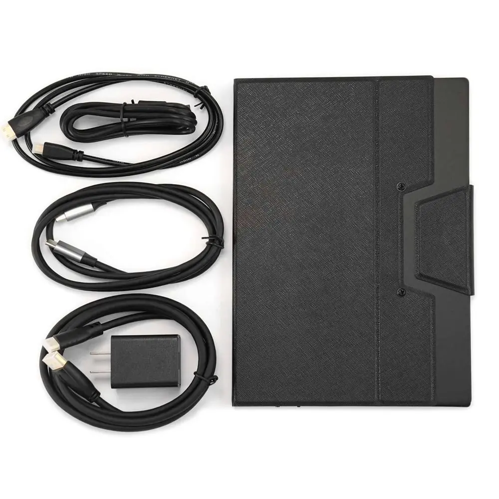 Met een gewicht van slechts 400 gram is het display dankzij de lichtgewicht constructie een draagbare optie voor iedereen die onderweg is. Het wordt geleverd met een leren case dat niet alleen het scherm beschermt, maar ook kan worden gebruikt als handige bureaustandaard, waardoor het geschikt is voor diverse omgevingen en toepassingen.