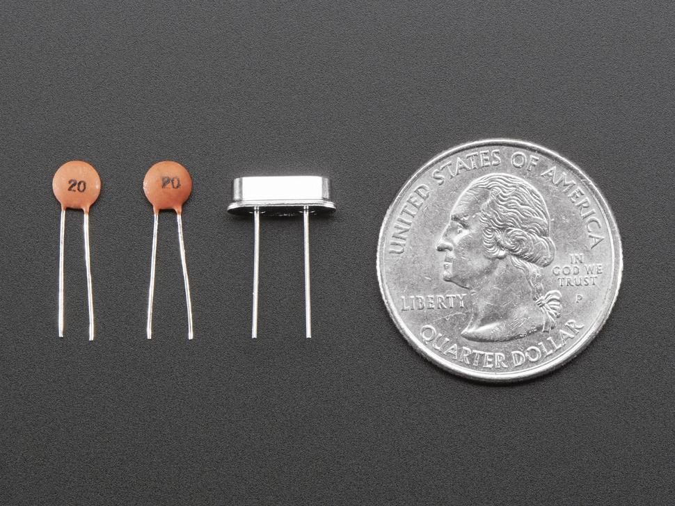 Adafruit 16 MHz kristal + 20pF condensatoren