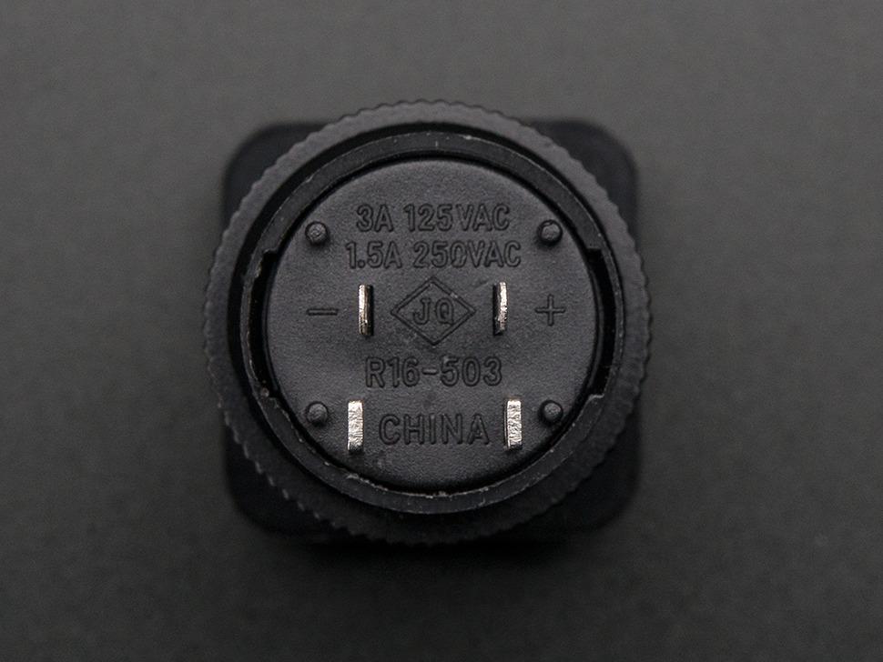 De zwarte kunststof behuizing van de knop bevat een blauwe led en een vergrendelbare aan/uit-schakelaar. Dankzij de aparte contacten voor de knop en de led kunt u flexibel bepalen wanneer de led oplicht. De led heeft een doorlaatspanning van ongeveer 3 V, waardoor een serieweerstand van 220 tot 1000 ohm nodig is voor optimale werking.