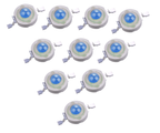 Deze set bevat 10 high-power leds van 1 watt met een blauwe lichtkleur en een lichthoek van 110°. Om de levensduur van deze leds te verlengen, is het belangrijk om ze te koelen met een aluminium koellichaam of een vergelijkbare aluminium ondergrond zoals een plaat of behuizing. Deze blauwe leds zijn ideaal voor toepassingen waarbij een sterke, blauwe verlichting nodig is, zoals in aquaria, decoratieve elementen of creatieve projecten.