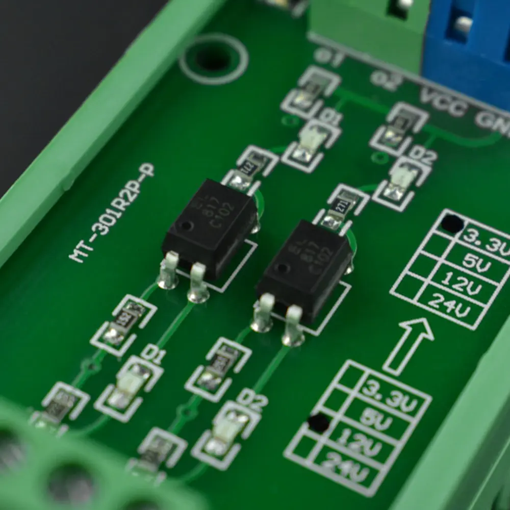 Deze 12V naar 5V- converter overbrugt vakkundig de kloof voor industriële sensortoepassingen op platforms zoals Arduino . Hij is voorzien van een 2-kanaals optocoupler-isolatie die gemeenschappelijke anode-, gemeenschappelijke kathode- en differentiële inputs ondersteunt. De module vertaalt het 12V-signaalniveau vakkundig naar een 5V-signaalniveau, wat de compatibiliteit en functionaliteit in verschillende systemen verbetert.
