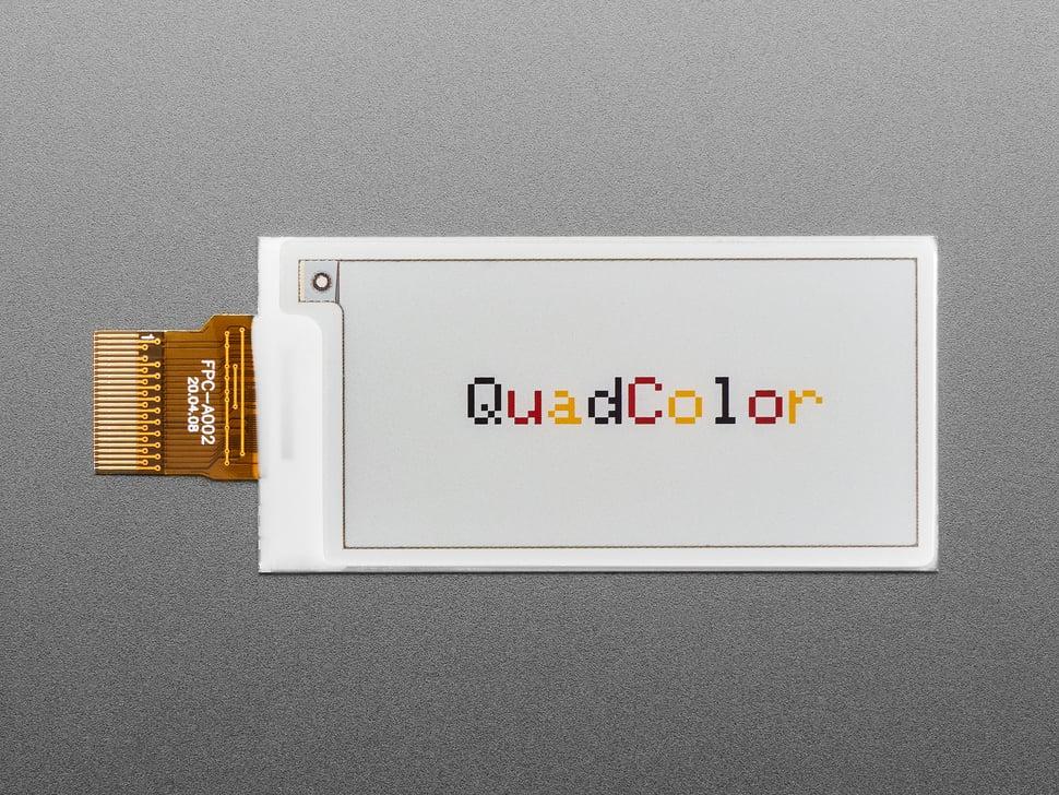 Verbeter je beeldschermtechnologie met het 2,13" Quad-Color eInk/ePaper Bare Display, bekend om zijn levendige rode, zwarte, gele en witte kleuren. Met een scherpe resolutie van 250x122 blinkt dit display uit in hoog contrast en leesbaarheid in daglicht, waardoor afbeeldingen eruitzien alsof ze op papier zijn gedrukt.Dit display is ontworpen voor veelzijdige toepassingen en moet worden geïntegreerd met een bord via een standaard 24-pin FPC e-paper connector. Gebruik onze Feather RP2040 ThinkInk voor een eenvoudige opzet zonder solderen, compatibel met Arduino of CircuitPython. Of overweeg de eInk Feather Friend voor Feather borden, of combineer met de eInk Breakout Friend voor eenvoudige breadboard-compatibiliteit.Dit display werkt met de JD79661-chipset, wat zorgt voor betrouwbare prestaties. De speciale Arduino-bibliotheek vereenvoudigt de integratie en ondersteunt naadloze communicatie als een Adafruit_GFX-compatibel display. Let op dat hoewel het niet mogelijk is om kleuren te lagen, onze ditheringsgids laat zien hoe je verbluffende effecten kunt bereiken met de beschikbare kleuren.