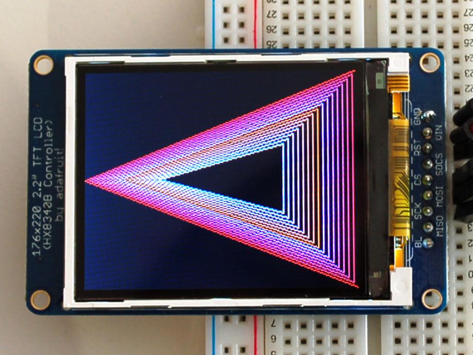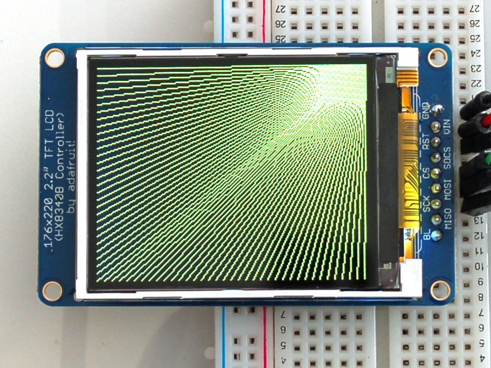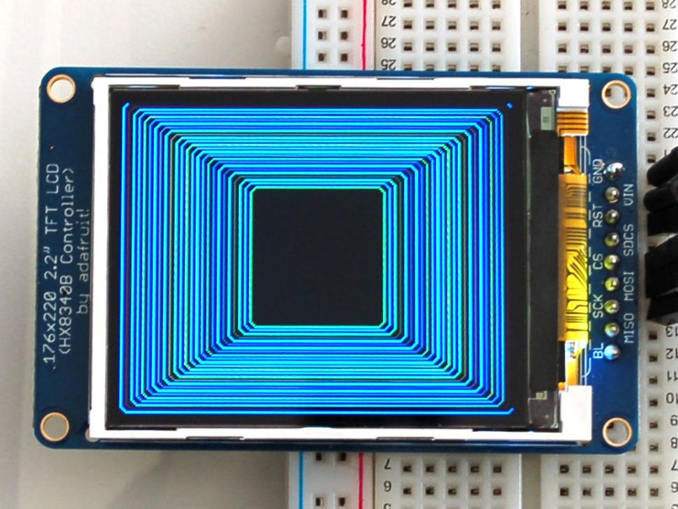 Het 2,2-inch display heeft 220x176 kleurenpixels. In tegenstelling tot CSTN-schermen zoals de goedkope Nokia 6110 biedt dit echte TFT-scherm superieure kleurkwaliteit en verversingssnelheden. Dankzij de HX8340BN- driver geeft het volledige 18-bits kleuren (262.144 tinten) weer en garandeert het consistente compatibiliteit met uw code.