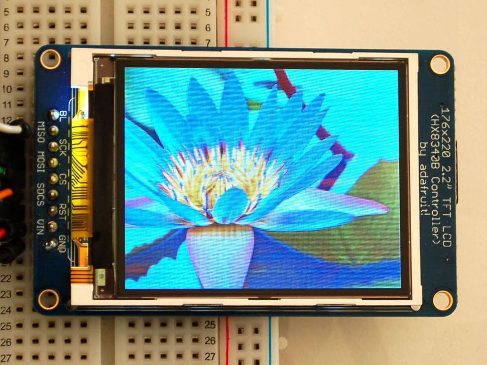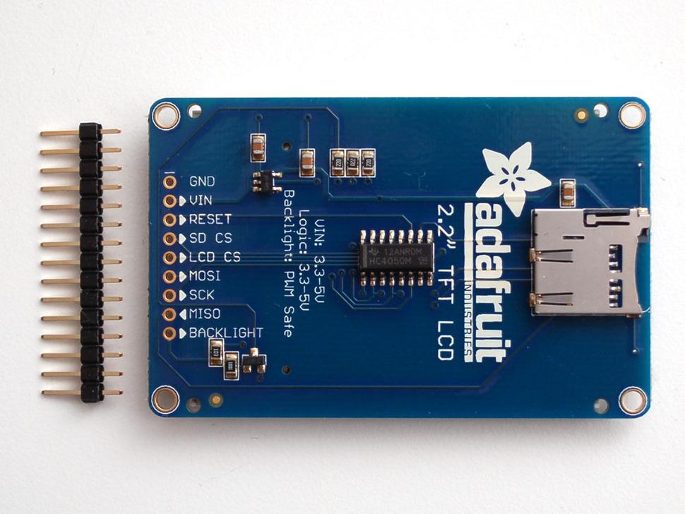 Deze breakout is voorzien van een TFT- display via een flex-circuit connector, een ultra-low-dropout 3,3V-regelaar en een 3/5V level shifter , waardoor gebruik met 3,3V of 5V voeding en logica mogelijk is. Daarnaast is er een microSD-kaarthouder geïntegreerd, waardoor full-color bitmaps van FAT16/FAT32-geformatteerde kaarten eenvoudig geladen kunnen worden, hoewel de kaart niet is meegeleverd.