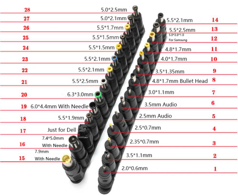 Deze female naar male 5,5*2,1 mm DC-adapterset is compatibel met alle soorten universele 2,5 mm DC male stekkers en kan worden gebruikt om vele soorten laptops, stereo's, beeldschermen, schermen, enz. van stroom te voorzien. Als het gaat om toepassingen zoals de industrie , beveiliging, onderhoud, enz., deze kit moet een goede assistent zijn voor ingenieurs en makers.