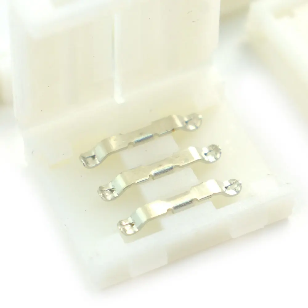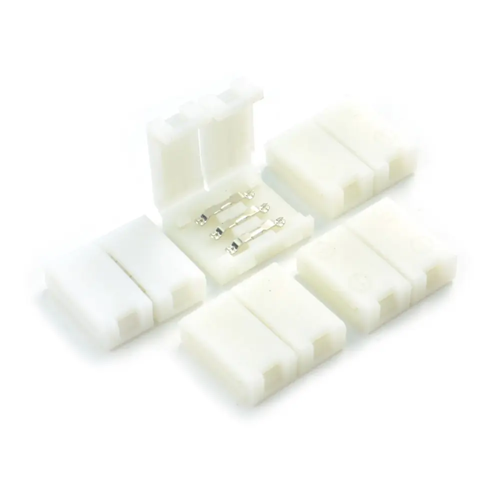 Deze 3-pins soldeerloze stripconnector is ontworpen voor eenvoud en efficiëntie. Hij is ontworpen voor een veilige pasvorm en verbindt naadloos 10 mm brede 3-draads RGB LED-strips zonder te solderen, waardoor het aansluiten een fluitje van een cent is. Het kliksysteem zorgt voor een stevige verbinding, waardoor u tijd en moeite bespaart en tegelijkertijd de betrouwbaarheid en prestaties behoudt.