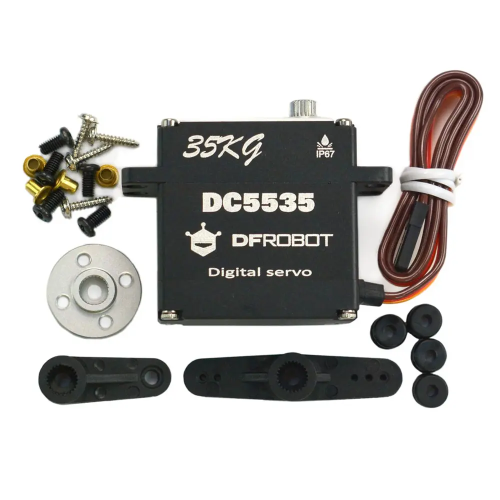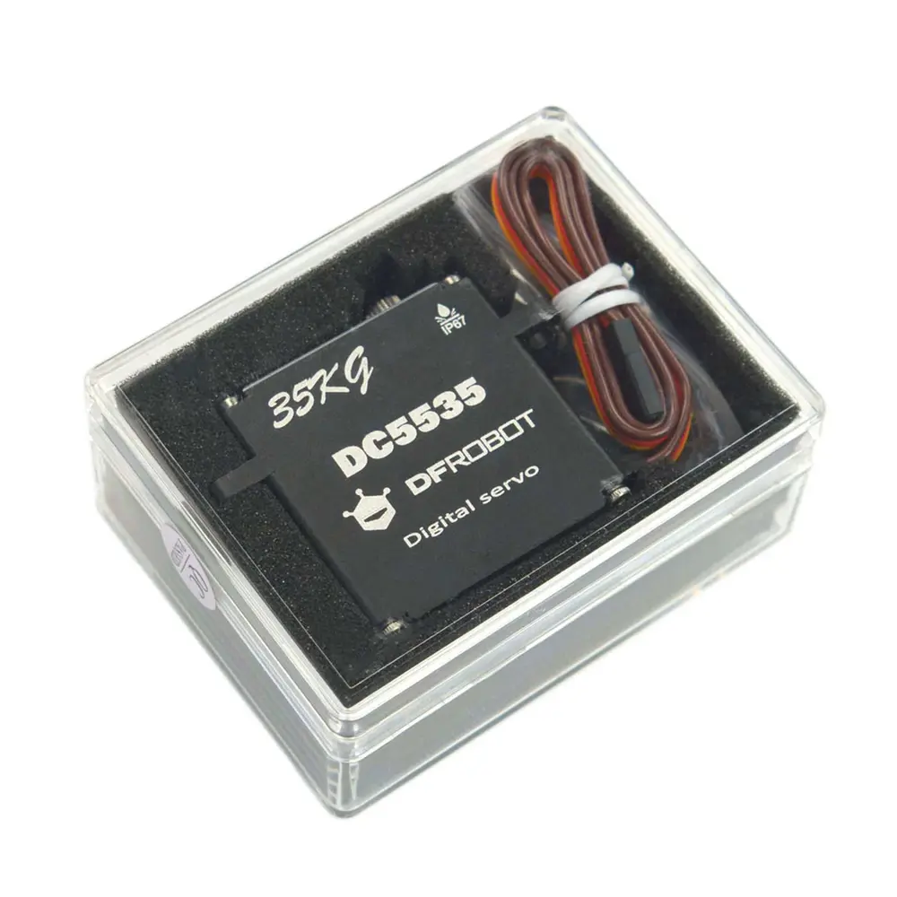 De servo werkt binnen een pulsbereik van 500-2500 μs en biedt een rotatie tot 180 graden en een stall van 35 kg/cm bij een werkspanning van 7 V. Hij is zeer geschikt voor geavanceerde ontwikkelings- en onderzoeksscenario's, evenals voor toepassingen op afstand, zoals zelfbouwrobots of -schepen.