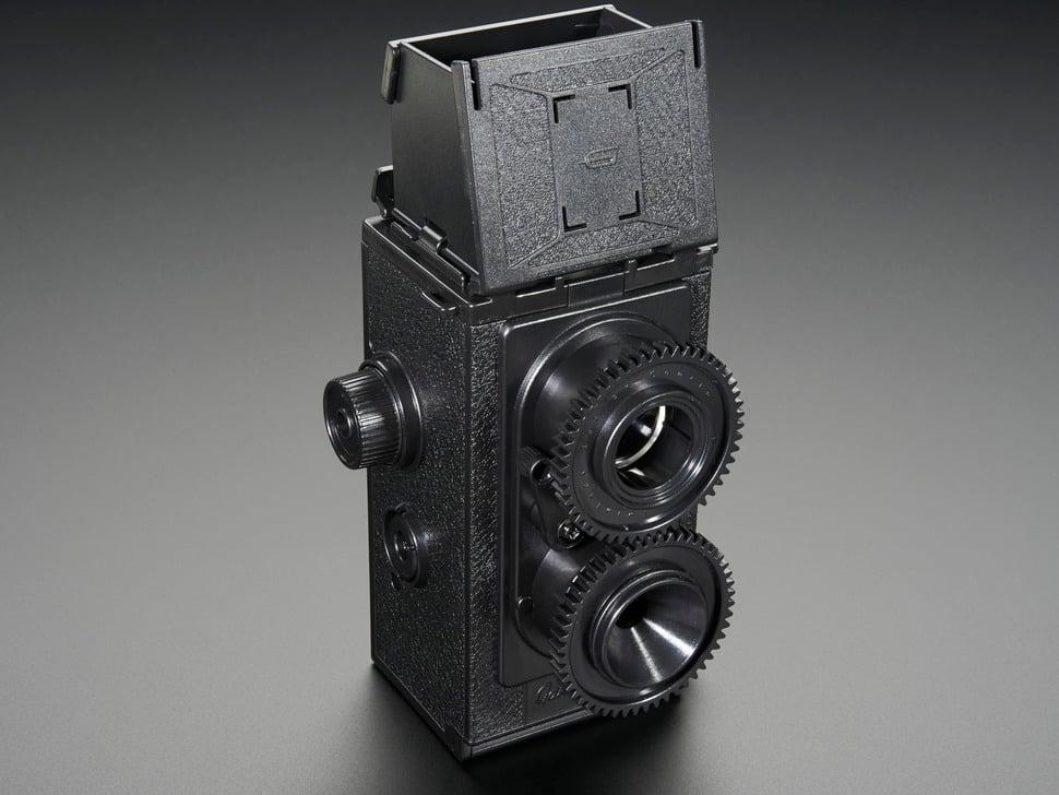 De Gakken Twin Lens Reflexcamera biedt een intrigerende duik in de wereld van analoge fotografie en elektronica. Eenmaal gemonteerd, toont deze gestroomlijnde camera een opvallend ontwerp met twee lenzen. De bovenste lens dient voor het instellen van het beeld en het scherpstellen, terwijl de onderste het beeld vastlegt, wat uw fotografie-ervaring verbetert.