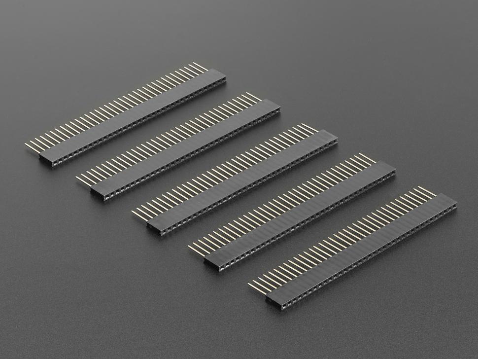 Elk pakket bevat vijf 36-pins lange female stackable headers. Ze zijn zelfs verguld zodat ze niet oxideren! U kunt deze vrij gemakkelijk in verschillende maten knippen. Tel eerst hoeveel posities je als laatste stuk wilt en trek vervolgens de volgende pin eruit met een tang. Snijd tenslotte de lege plek door met een zijsnijtang. Je kunt de halve plek schoonmaken met een vijl of met de zijsnijtang.