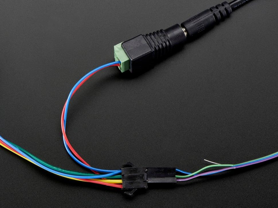 De draden worden verkocht als strengen van 20 pixels in serie, elk met twee JST SM 3-pins connectoren voor naadloze verbinding. Zorg voor voldoende vermogen, aangezien er bij meerdere strengen een hoge stroomvraag kan ontstaan. Voor een efficiënte bedrading zijn de twee voedingsdraden gescheiden en is een 2,1mm-klemmenblokadapter handig voor het aansluiten van een DC-voeding, zoals een 12V/5A-bron die meerdere strengen kan ondersteunen, afhankelijk van de stroomsterkte.