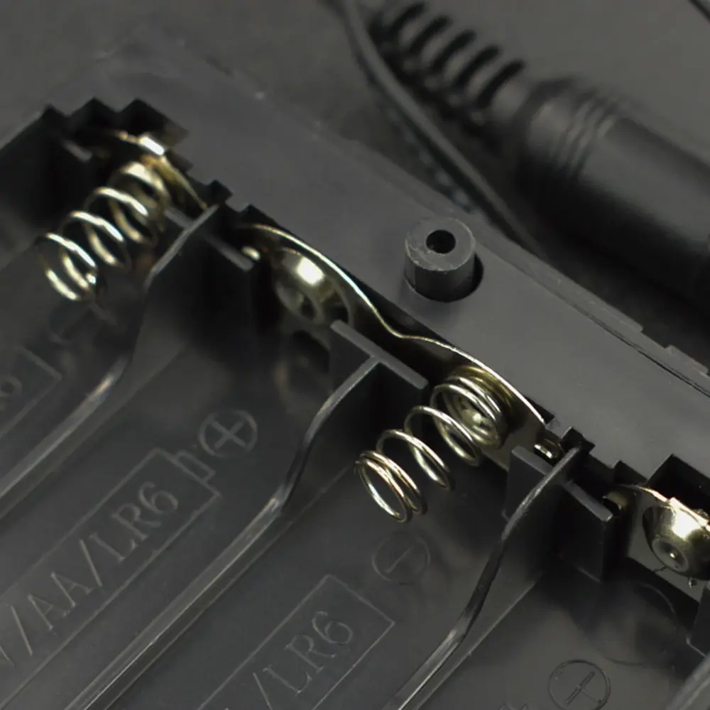 Deze batterijhouder is ontworpen voor vier AA-batterijen en biedt niet alleen een veilige behuizing, maar ook veelzijdigheid voor diverse elektronische projecten. De meegeleverde DC 2.1-aansluiting vereenvoudigt het aansluiten op uw circuits door een betrouwbaardere en robuustere verbinding te bieden in vergelijking met traditionele bedradingsmethoden.