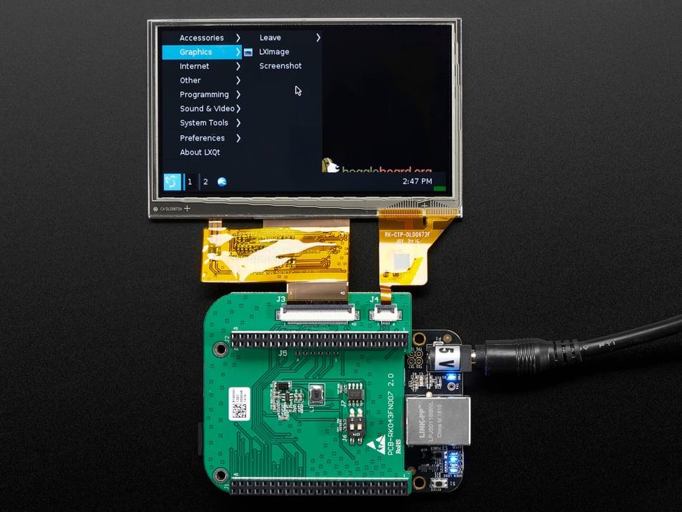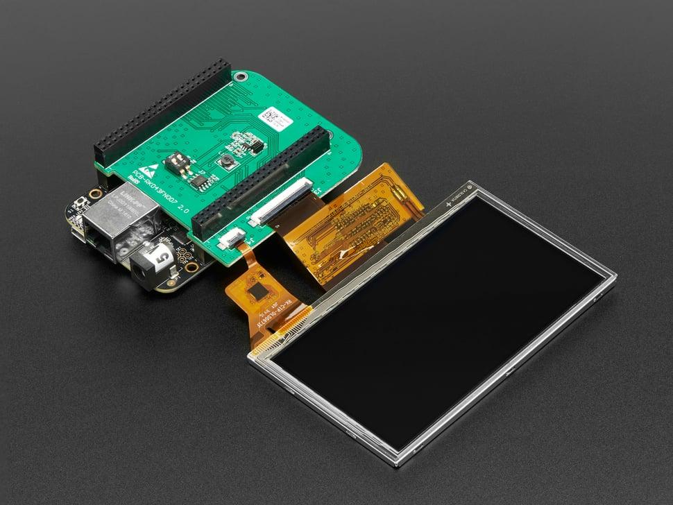 Dit 4,3-inch touchscreen- display van Cape maakt rechtstreeks verbinding met uw BeagleBone (wit, zwart of draadloos) en biedt een full-colour display oplossing. Het display is voorzien van een levendig 4,3-inch TFT LCD-scherm met led-achtergrondverlichting en 480 x 272 pixels, met capacitieve overlay voor smartphone-achtige invoer.