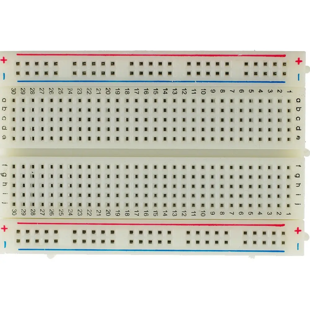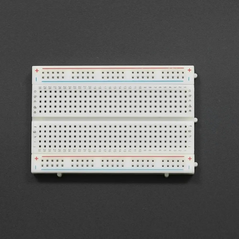Een van de meest opvallende kenmerken zijn de afneembare voedingsrails, waardoor je het breadboard kunt stroomlijnen tot een slank formaat van slechts 3,5 cm. Dit biedt de flexibiliteit om het eenvoudig op een Arduino protoshield te monteren en naadloos te integreren in grotere systemen of aangepaste configuraties. Of je nu een complexe sensorarray of een eenvoudige led-opstelling maakt, de aanpasbaarheid van dit breadboard is een echte game-changer.