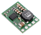 De compacte D24V10F5 synchronous buck voltage regulator converteert een spanning tot 36V omlaag naar 5V met een maximale output van 1A. Deze regulator heeft een efficiëntie tussen de 85% en 90% met een zeer lage dropout waardoor de module al een spanning van enkele honderden millivolts boven de 5V kan worden gebruikt.