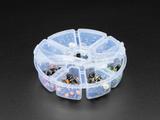 Ze hebben een tactiliteit van ongeveer 250 gf en zorgen voor een aangename klik bij elke druk. Verpakt in een speelse ronde plastic case , is elke knop in aparte compartimenten geplaatst, beveiligd met handige lipjes die gemakkelijk openklappen.