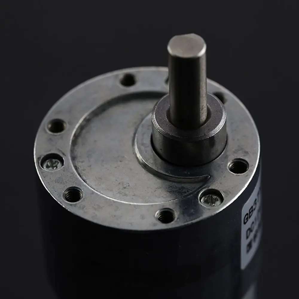 De motor is ontworpen met een 1,5 cm lange D-vormige output as met een diameter van 6 mm en blinkt uit in veelzijdigheid. Hoewel hij het beste werkt op 12 V, blijft hij zeer flexibel door te starten met draaien bij spanningen vanaf 1 V. De frontplaat is voorzien van zes gelijkmatig verdeelde M3-schroefdraadgaten in de vorm van een perfecte zeshoek. Dit doordachte ontwerp, met een hart-op-hart afstand van 15,5 mm, vereenvoudigt de installatie, waardoor u hem efficiënt en probleemloos in uw projecten kunt integreren.