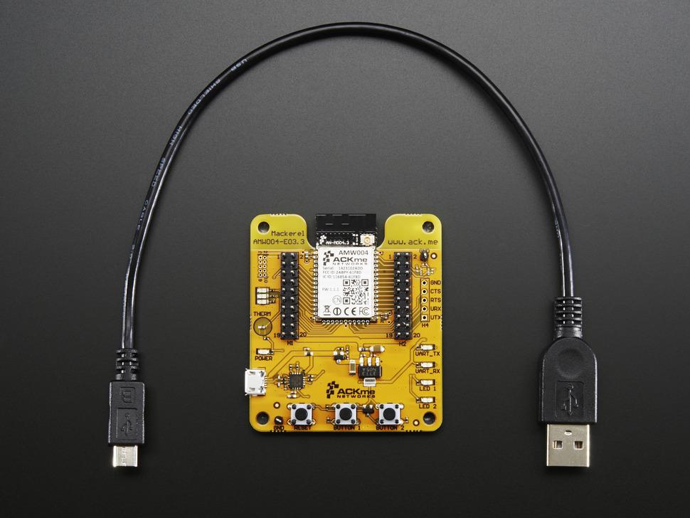 Het AMW004-E03 'Mackerel' board is ontworpen voor moeiteloze interactie met de WiConnect via de Wallaby-module voor opbouwmontage. Sluit het aan op een computer met een standaard USB kabel en begin te experimenteren met de gebruiksvriendelijke ASCII-opdrachten om de status van knoppen te bewaken en LED's te bedienen.