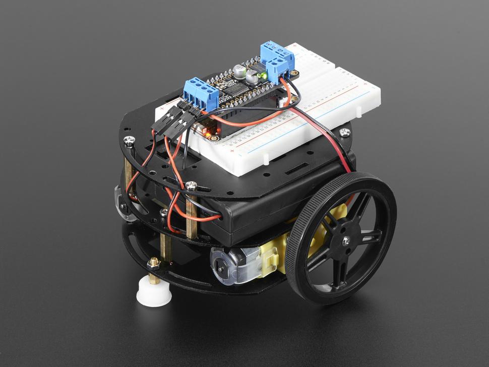 Ervaar de sensatie van robotica met de compacte en krachtige AdaBox002. Deze kit biedt alles wat je nodig hebt om een Bluetooth-gestuurde minirobot te bouwen, met behulp van een feather Bluefruit LE-microcontroller en een motorgestuurde vleugel. Het drielaagse ronde chassis, gecombineerd met twee motoren en wielen, vormt een veelzijdig robotplatform.
