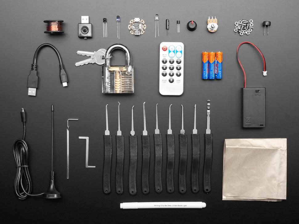 AdaBox007 SPY biedt een spannende duik in de wereld van doe-het-zelf elektronica, met het thema Geheim + Spion + Beveiliging. Deze soldeerloze set helpt bij het ontwikkelen van praktische vaardigheden met fantastische projecten zoals puzzels oplossen en apparaten bouwen die beveiligingsconcepten aanleren.