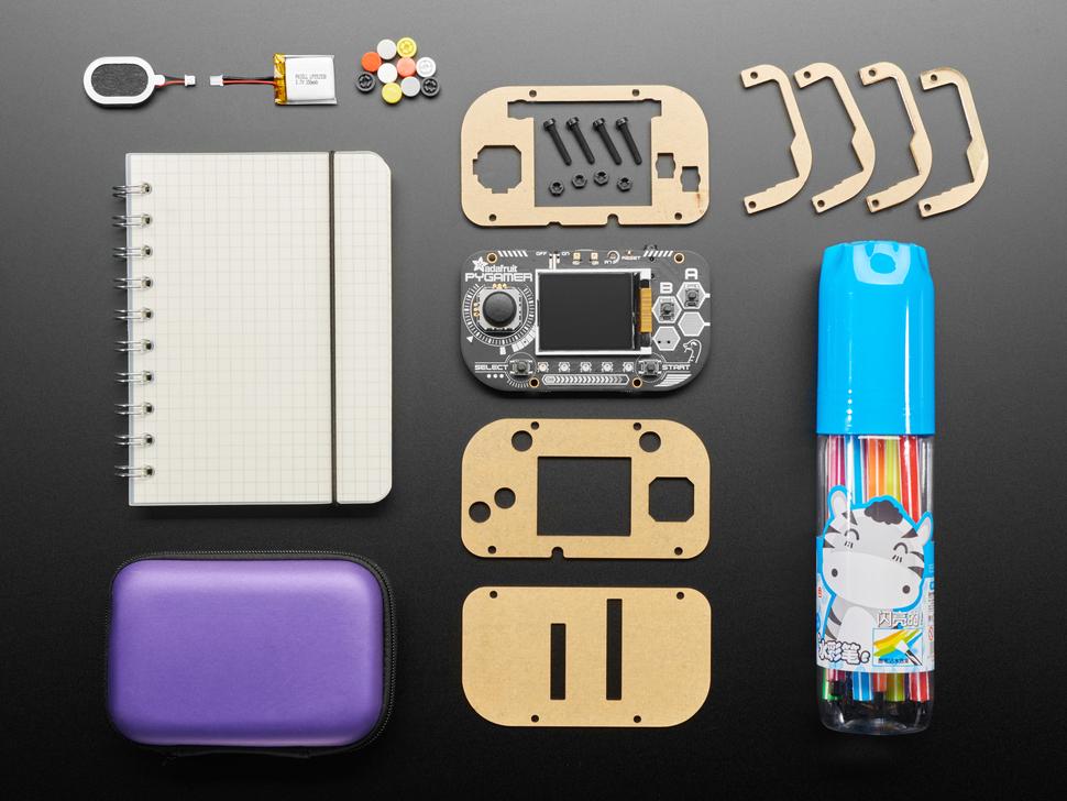 Profiteer van de bijbehorende accessoires zoals een acryl behuizing, plastic caps , een lithium-ion-polymeerbatterij, een minispeaker en een maker-vriendelijke case met ritssluiting. Verrijk je ervaring met een verpakking van 12 aquarelstiften en een spiraalvormig notitieboek met rasterpapier om spelideeën op te schrijven.