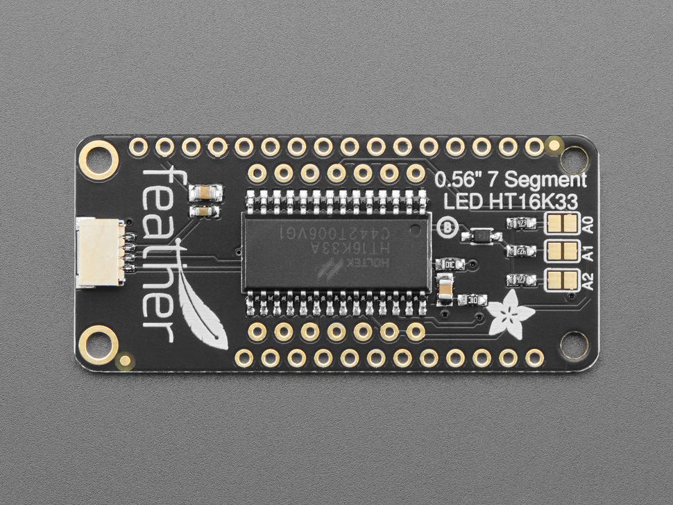 Met een driver , de HT16K33, verlaagt dit display de pinvereisten door gebruik te maken van I²C-opdrachten. Het maakt naadloos verbinding met elke feather en deelt I²C-pinnen met andere apparaten.