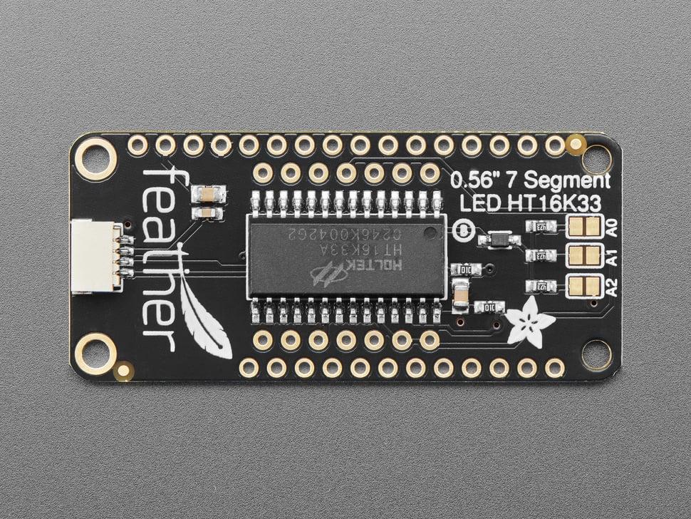 Met een helderblauw display en minimale bedrading maakt hij gebruik van de effectieve HT16K33 driver , die alle multiplexing afhandelt. De besturing bestaat alleen uit I2C-opdrachten, waardoor de GPIO's van je feather vrijkomen voor andere componenten.