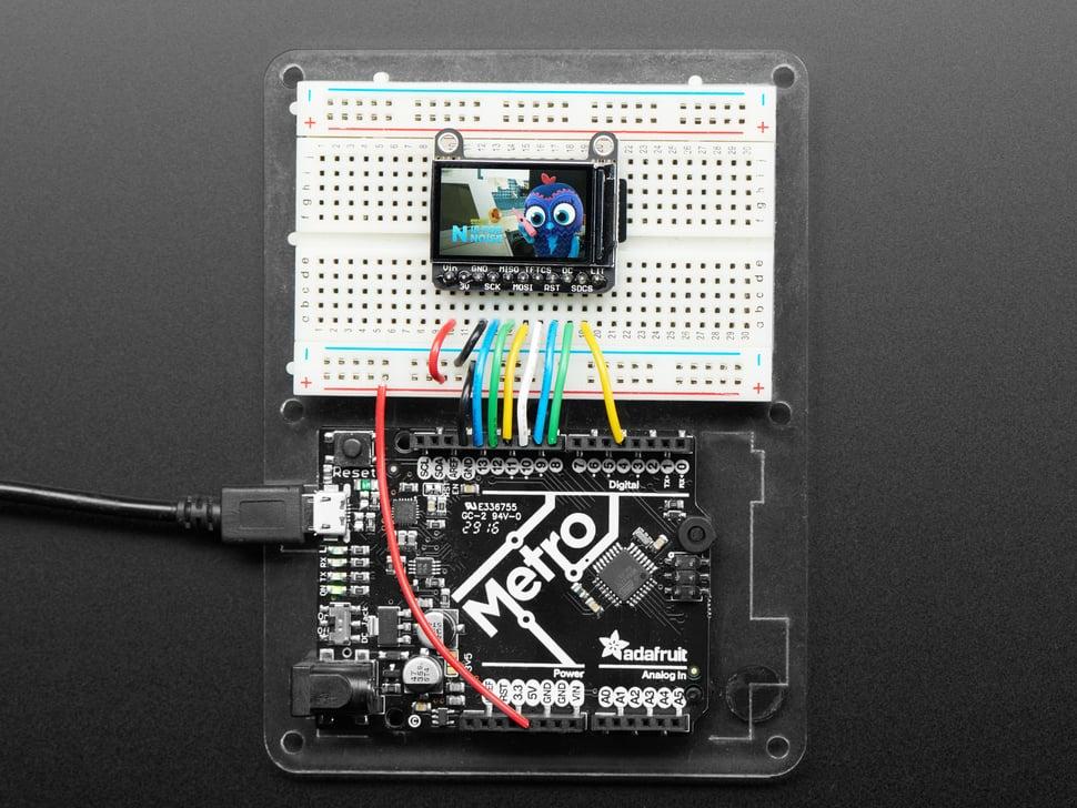 Onze breakout bestaat uit een gesoldeerd TFT- display met een 3,3V-regelaar met ultra-low-dropout en een 3/5V level shifter voor gebruik met zowel 3,3V- als 5V-voedingen. Dankzij de ingebouwde microSD-kaarthouder kun je eenvoudig full-color bitmaps laden vanaf een FAT16/FAT32-geformatteerde kaart.