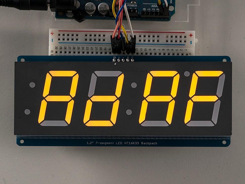 Adafruit 1,2" 4-cijferig 7-segments display met I2C-rugzak - Geel