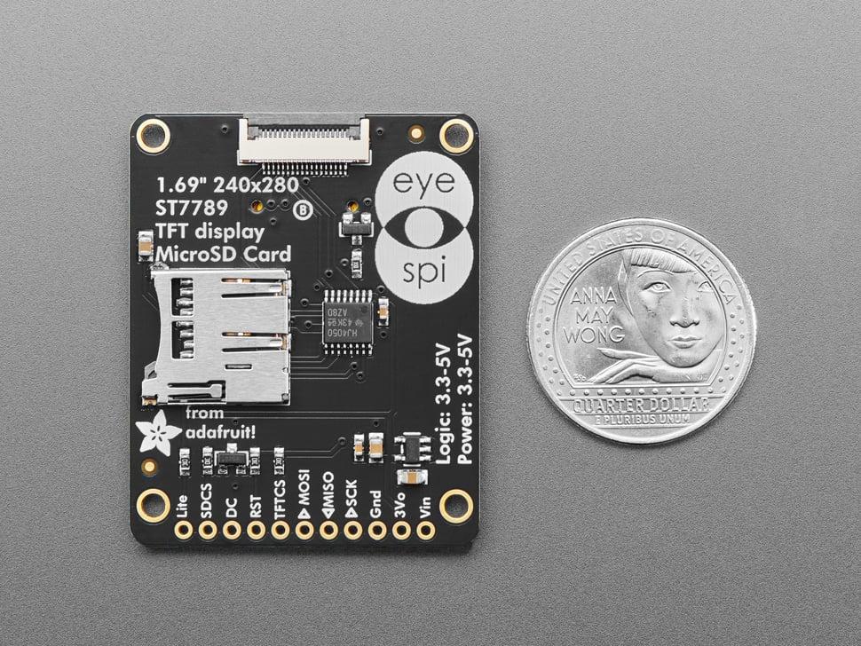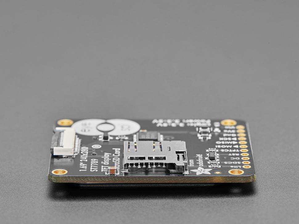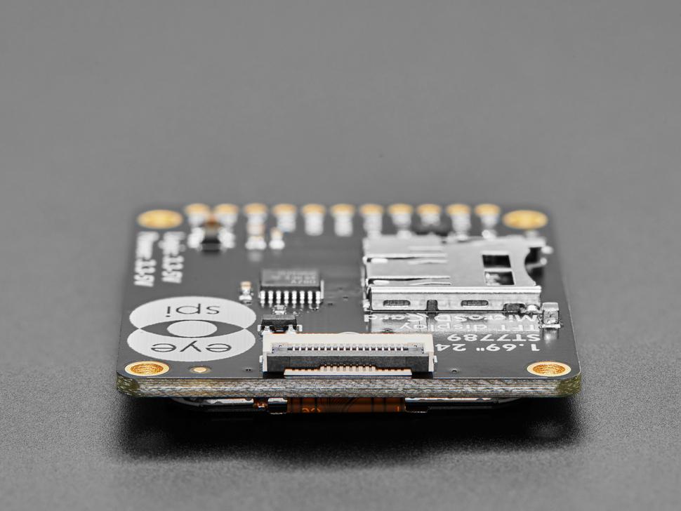 Unieke ronde hoeken worden bereikt door pixels in het RAM-geheugen te verwijderen, waardoor er geen extra mapping nodig is – behandel het als een rechthoekig display . De breakout bevat een microSD-kaartslot voor het laden van bitmaps en is voorzien van een regulator en 3/5V level shifter voor brede compatibiliteit. Een 18-pins "EYE SPI" standaard FPC-connector maakt soldeervrije verbindingen mogelijk.