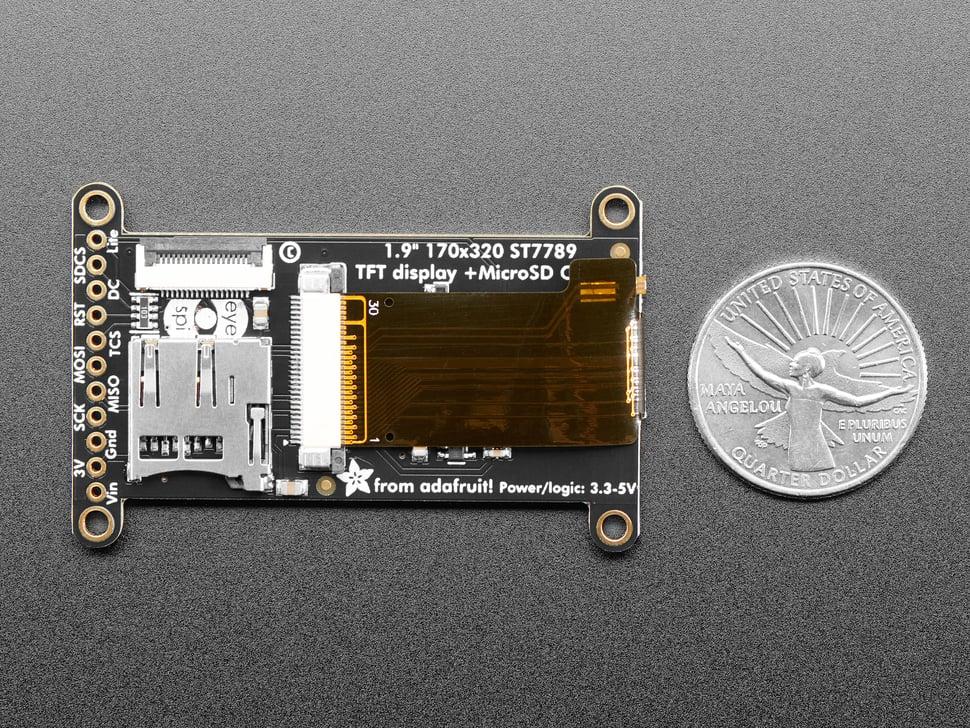 Het 1,9-inch scherm heeft 320x170 16-bits full-color IPS-pixels, wat zorgt voor rijke beelden tot 80 graden off-axis. Uitgerust met de ST7789 TFT- driver is het compatibel met een open-source Arduino library die het tekenen van vormen en tekst vergemakkelijkt.