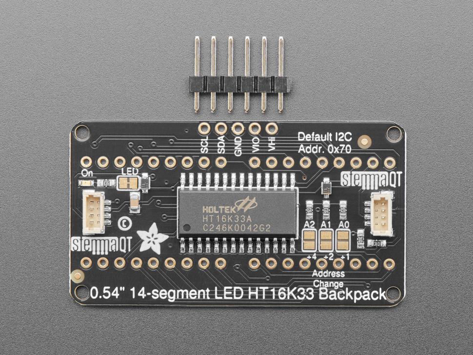 Voor optimaal gebruiksgemak behoudt het board zijn formaat en pinout, maar is het nu voorzien van twee STEMMA QT-connectoren. Deze zijn compatibel met Sparkfun Qwiic I²C-connectoren. Dit maakt soldeerloze verbindingen tussen uw board en de HT16K33 mogelijk of integreert naadloos met diverse sensoren en accessoires met behulp van een compatibele kabel.