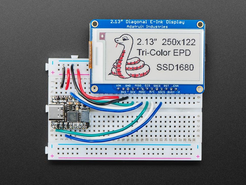 Deze breakout is een interessante verbetering voor microcontrollers en maakt de integratie van een driekleuren eInk- display eenvoudig. Met een 2,13-inch display met 250x122 pixels levert het rode, zwarte en witte kleuren op een papierachtig, contrastrijk scherm, perfect voor zichtbaarheid bij daglicht.