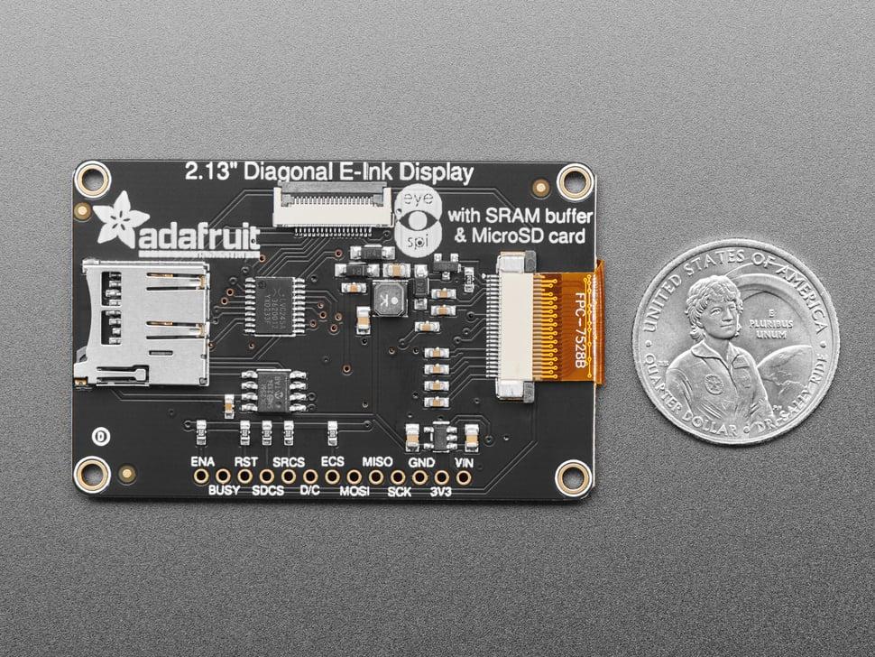Profiteer van een ingebouwde SRAM-chip voor eenvoudig gegevensbeheer zonder het geheugen van de microcontroller te belasten. Deze chip gebruikt dezelfde SPI-poort als het eInk display , waardoor er slechts één extra pin nodig is en framebuffering niet nodig is. Gebruik de meegeleverde libraries voor moeiteloze integratie en functioneer als een Adafruit_GFX-compatibel display .