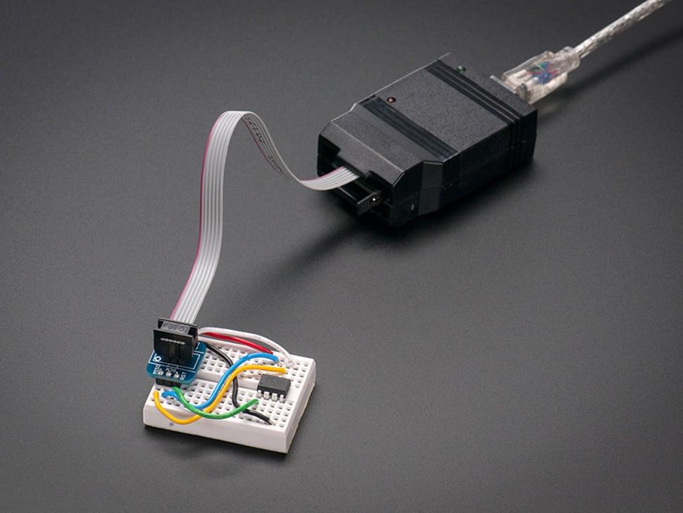 Inbegrepen zijn een robuuste mini-PCB, een 2x3- header en een stuk header van 0,1 inch. Licht solderen is vereist: plaats en soldeer de 2x3- header , splits de header om uw breakout op een breadboard te stabiliseren en soldeer eenvoudig de zijpinnen voor een veilige verbinding.