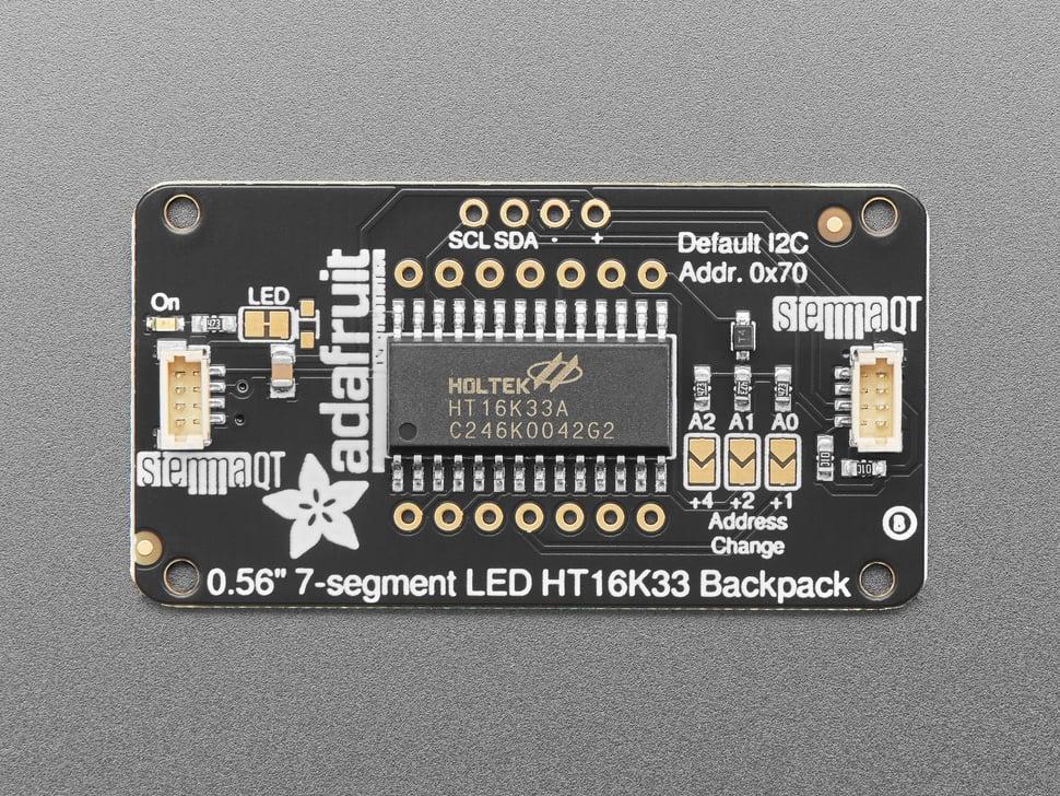 De 7-segment LED-rugzakken, nu verkrijgbaar zonder LED's, zijn voorzien van de HT16K33 I²C LED- driver voor naadloze integratie. Gebruik onze efficiënte library om binnen 30 minuten cijfers op het scherm display .