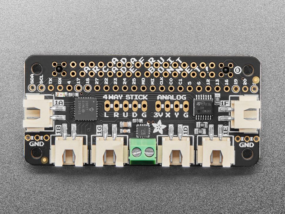 De Adafruit Arcade Bonnet vereenvoudigt het proces van het bouwen van complexe emulatorprojecten. Perfect formaat voor een Pi zero , ongelooflijk compact en ook compatibel met Pi-modellen zoals de 2, 3, B+, 4 en 5. Met JST sockets sluit je naadloos tot zes arcadeknoppen aan met snelkoppelingen. De header breakouts vergemakkelijken het gebruik met joysticks met schakelaars of potentiometers.