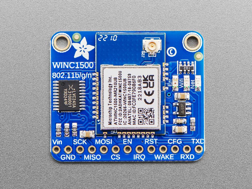 Adafruit ATWINC1500 WiFi Breakout met uFL-connector.