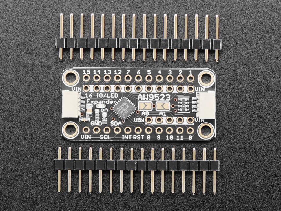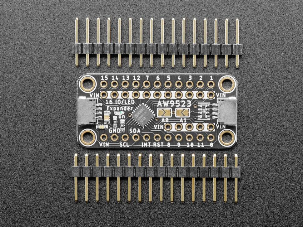 De AW9523 is een betaalbare oplossing, met vier I2C-adresopties, waardoor je tot vier expanders op een enkele bus kunt aansluiten. Elke pin kan worden ingesteld als een invoer of uitvoer. Dit apparaat heeft ook een IRQ-uitgang die je waarschuwt wanneer de invoerpennen van waarde veranderen, wat de interactiviteit van je project vergroot.