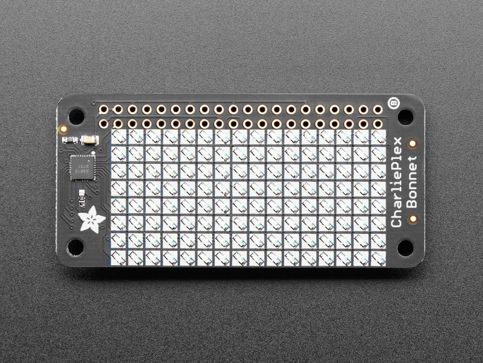 Je zult je ogen niet kunnen afhouden van de betoverende patronen die dit Adafruit CharliePlex LED Matrix display Bonnet creëert. Dit 16x8 LED- display kan op elke Raspberry Pi met een 2x20 connector worden geplaatst voor een prachtig, helder raster van 128 CharliePlex LED's. Het wordt zelfs geleverd met een ingebouwde CharliePlex- driver die via I²C werkt.