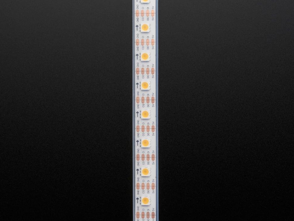 De DotStar-strips worden geleverd in een configuratie met 60 leds per meter op een witte flexibele printplaat. Elke strip is omhuld met een weerbestendige mantel en kan eenvoudig op maat worden gesneden, met snijlijnen voor elke led. Eenvoudige verbindingen worden gemaakt via 0,1" koperen pads.