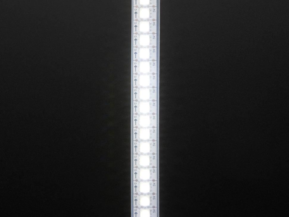 Elke strip bevat 144 leds per meter, gehuisvest op een flexibele witte printplaat met een weerbestendige mantel. De fosfor verspreidt het licht van de 3 witte dies en zorgt voor een consistent heldere, koelwitte verlichting die traditionele RGB-mixen overtreft.