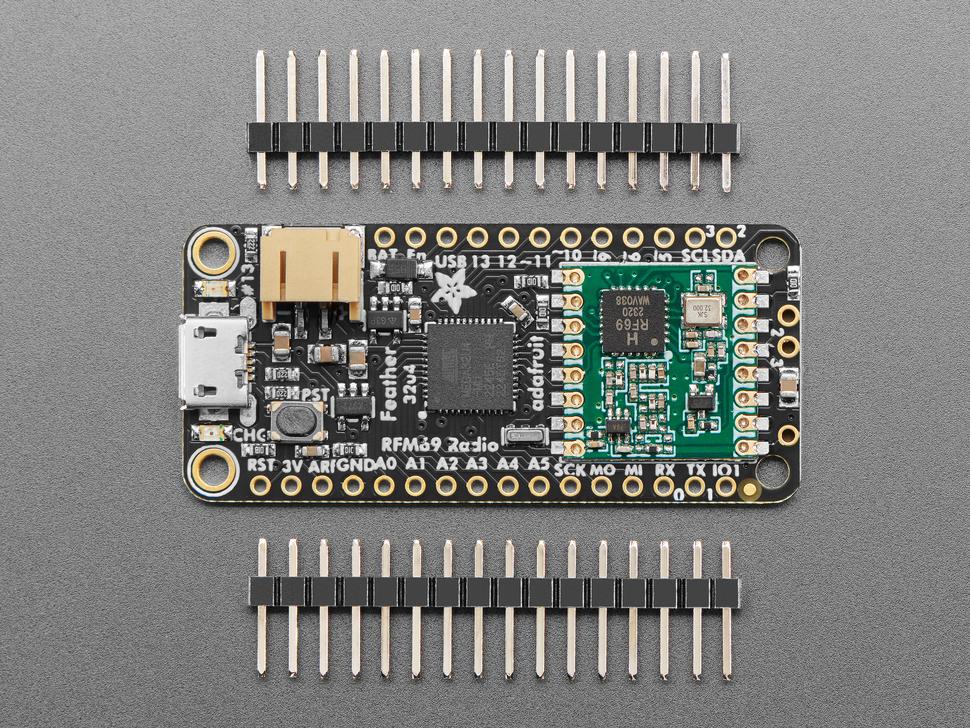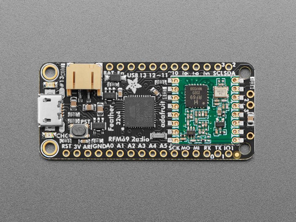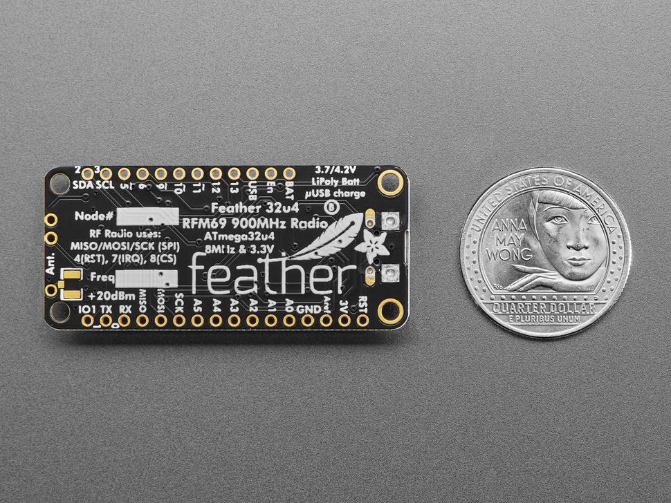 De Adafruit feather 32u4-radio met RFM69HCW 900MHz-module combineert een microcontroller en een packet-radiotransceiver met USB en batterijoplader, ideaal voor het creëren van draadloze netwerken met een groter bereik en een lager stroomverbruik dan wifi. De kern bestaat uit de ATmega32u4-chip met 8 MHz en 3,3 V logica, met 32 kB flashgeheugen en 2 kB RAM.