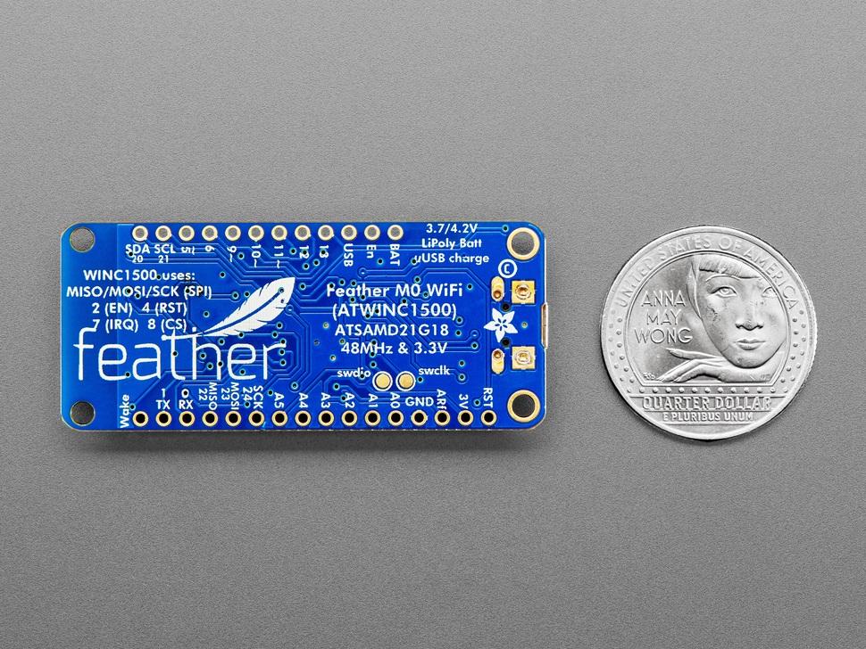 feather M0 WiFi van Adafruit is een compact, lichtgewicht board dat lijkt op een feather en dat zich richt op een veelzijdige standaard voor draagbare microcontrollercores.