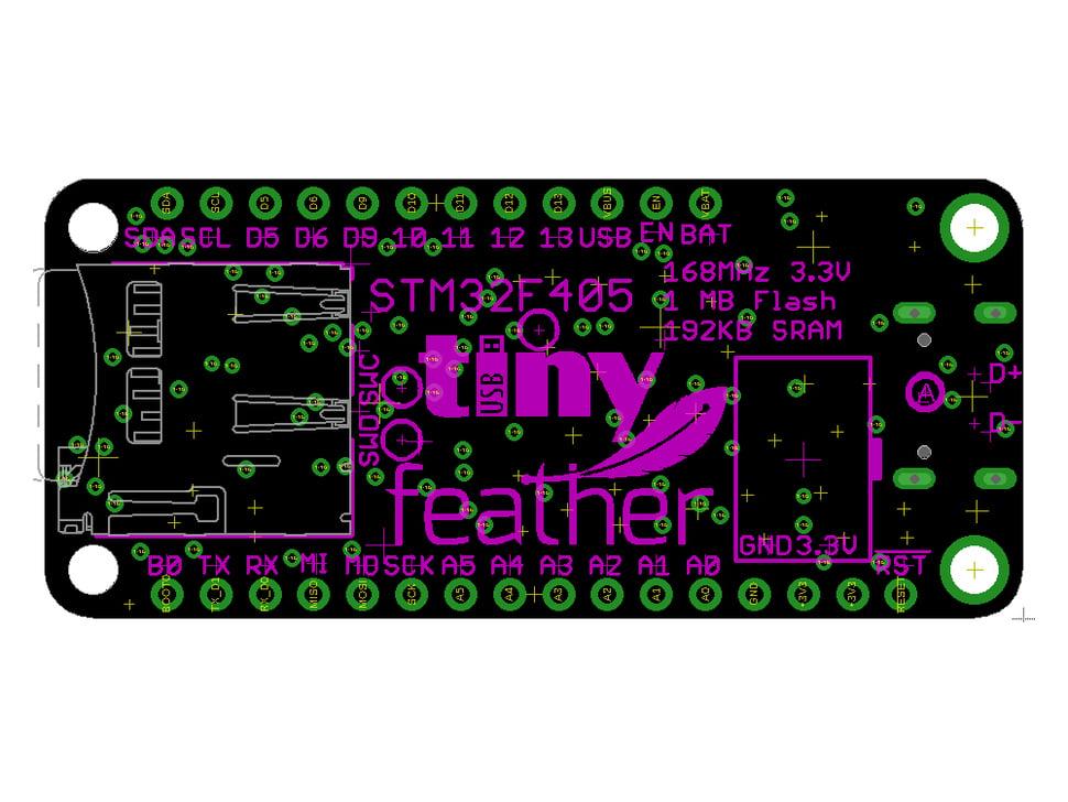 Ervaar ongeëvenaarde snelheid met het STM32F405 feather , aangestuurd door een 168 MHz STM32F405 Cortex M4-processor. Dit krachtige board voert CircuitPython moeiteloos uit en board daarmee het snelste in zijn klasse.